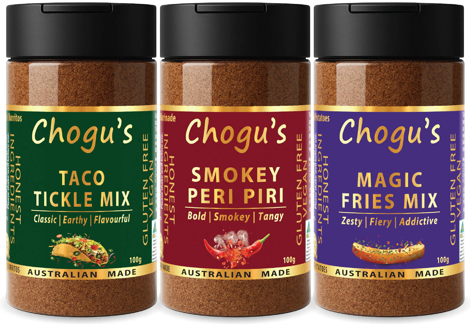 Perfect for fries, tacos, weeknight dinners, BBQ, roasted veggies, popcorn, bowls and everything in between. If you want big flavour with zero fuss, this Trio belongs in your pantry.